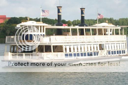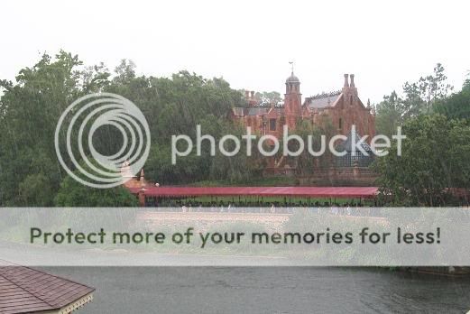 Y volvemos al Liberty Square Riverboat. Aunque las calles están cada vez más llenas, no hay demasiada gente esperando para subir a bordo, y el barco está a punto de llegar. Nada más subir a bordo se abre el cielo y empieza a diluviar.